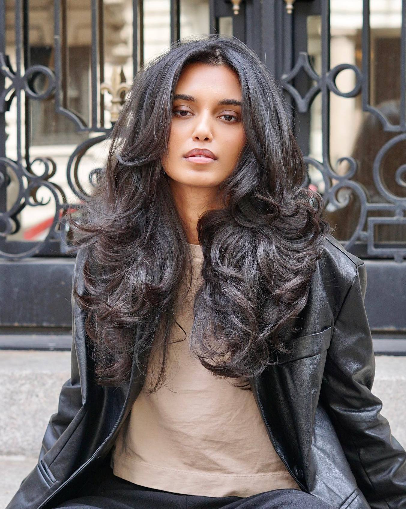 Choppy V-cut layers look trendy and catchy and match any hair type and texture. Pair them with stunning brown balayage to complement your naturally dark hair and make your layered haircut more textured and voluminous.
