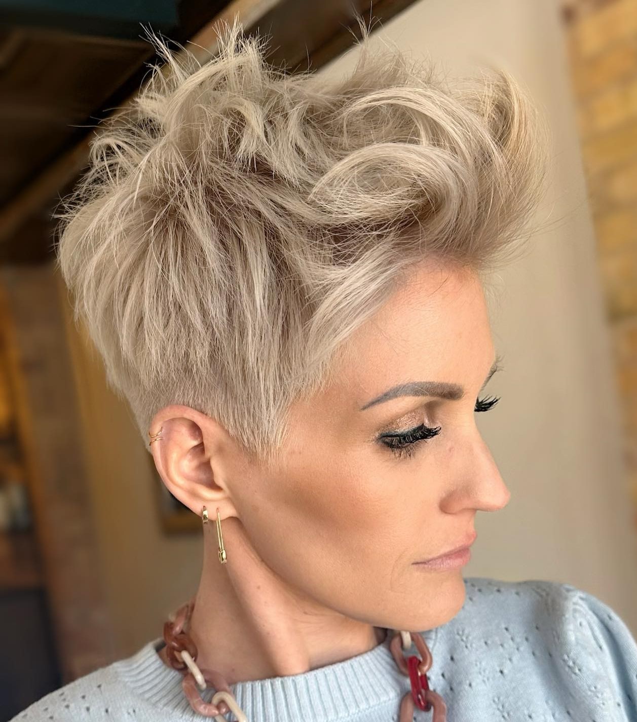 The crazy texture in this cut may seem daunting, but once ladies leave their thirties behind they become fearless and confident — which is the best time to try something outside of the box. This look isn’t your everyday short haircut, and that’s exactly why it suits someone who’s never been afraid to stand out.