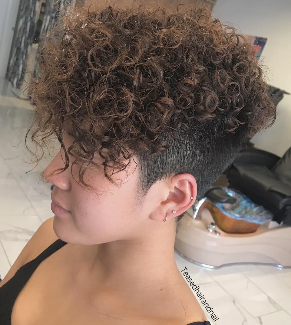 Mohawks are cool hairstyles of really tough guys, although that doesn’t scare women. There are, indeed, very few things from the male wardrobe or male hairstyles which women haven’t adopted for themselves. We know how to introduce our special changes, giving a feminine touch to originally fierce male hairstyles. Curls and Mohawks are a great stylish combination. You may cut your sides closely, sleek them up or braid them. Even if someone tells you, it’s not a real Mohawk, who cares? It looks awesome and that’s all that counts. Judge for yourself.