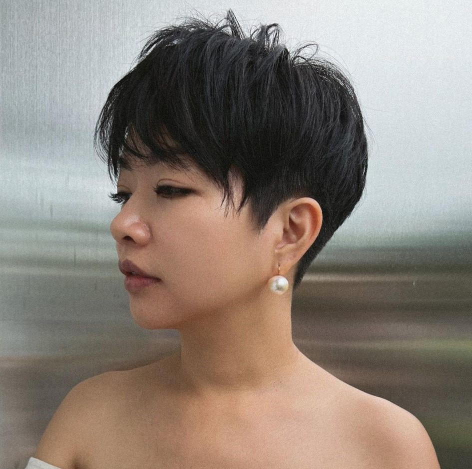 A tapered nape section with a long, side-swept fringe is a less extreme style compared to a bolder, disconnected, undercut chop. These elements give a softer touch to your conventional pixie cut.