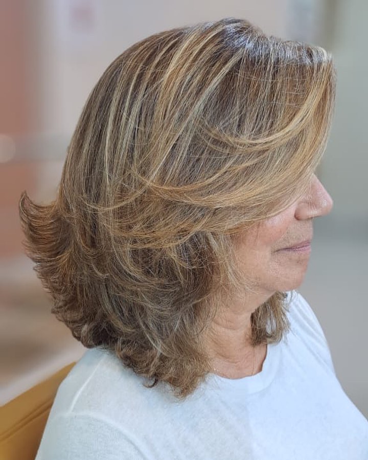 As you get older, your hair naturally loses volume and color, but with feathered layers like these and the right color, you can embrace a whole new hairstyle — one that makes you look current and classy.