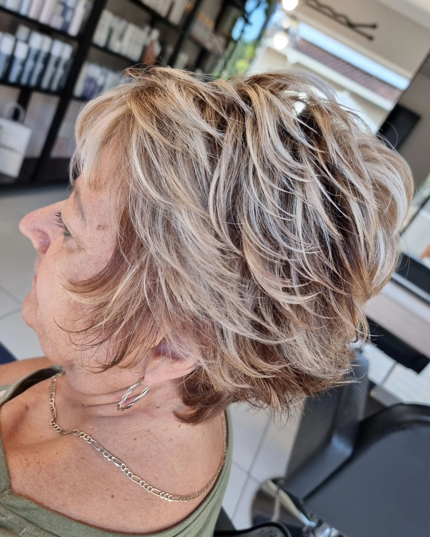 Layers are a surefire way to add an air of youth to any hairstyle. For older ladies, a cropped bob with flowy layers is an ideal option that is easy to manage. For those blonde women out there, add in some highlights for a little extra dimension.